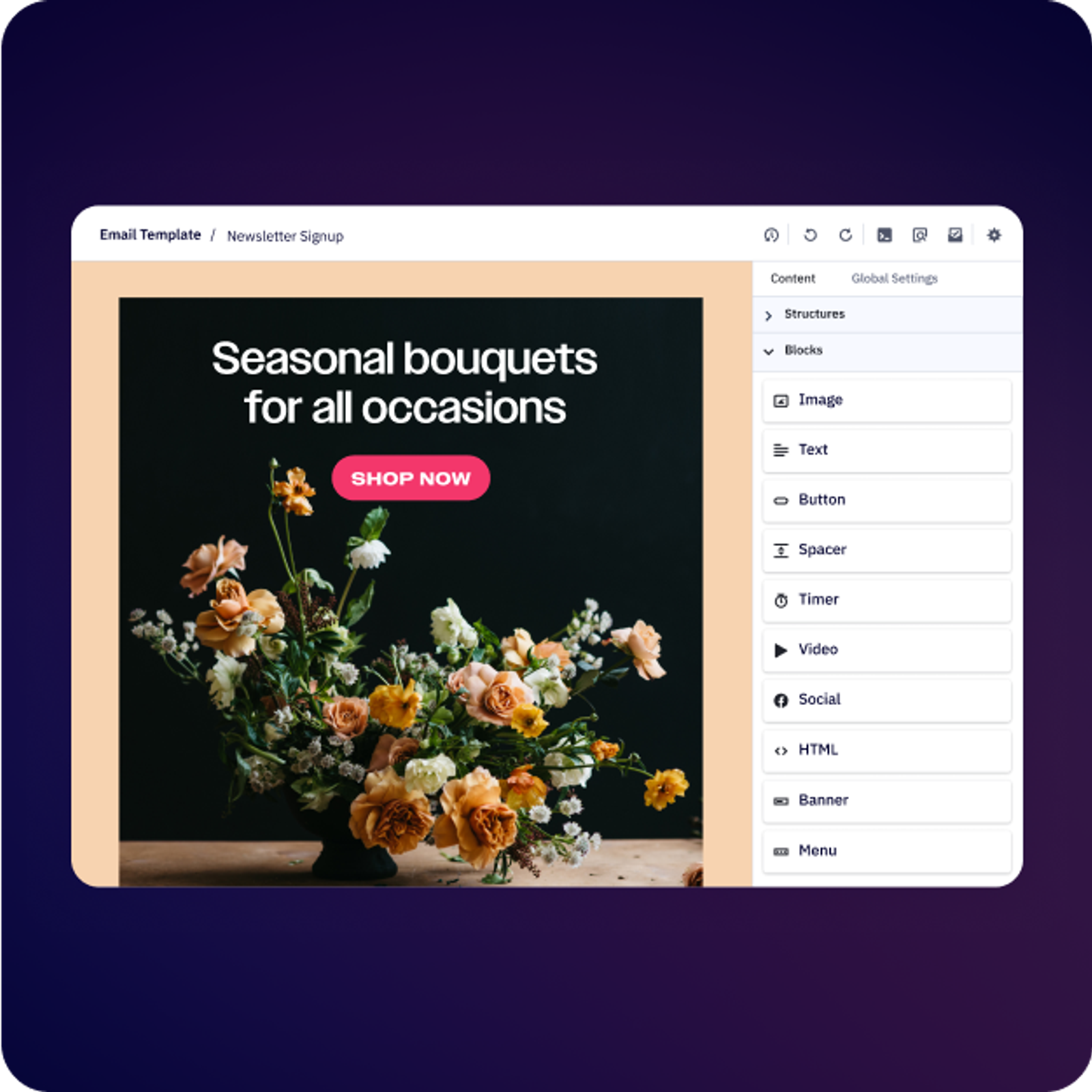 Drag, drop, and design professional emails without any technical skills or design experience needed. Choose from hundreds of mobile-responsive templates or build your own from scratch.