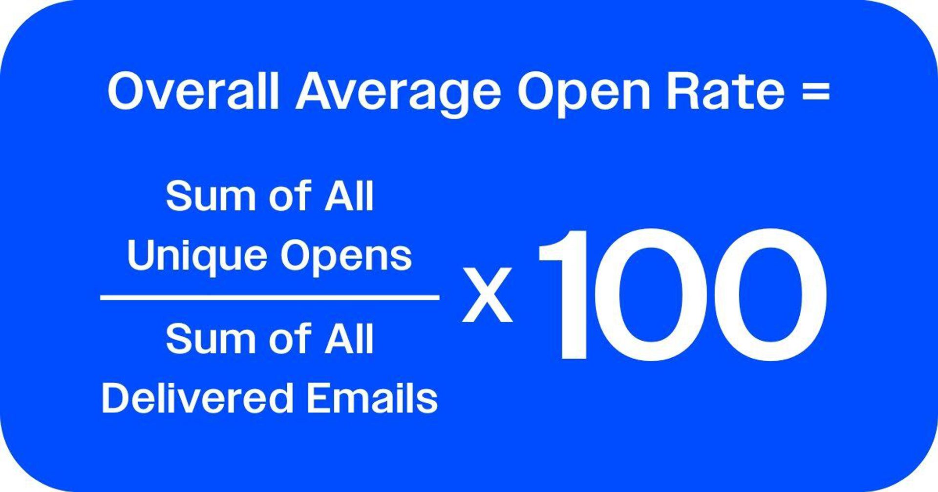 Overall Average Open Rate = (Sum of All Unique Opens ÷ Sum of All Delivered Emails) × 100