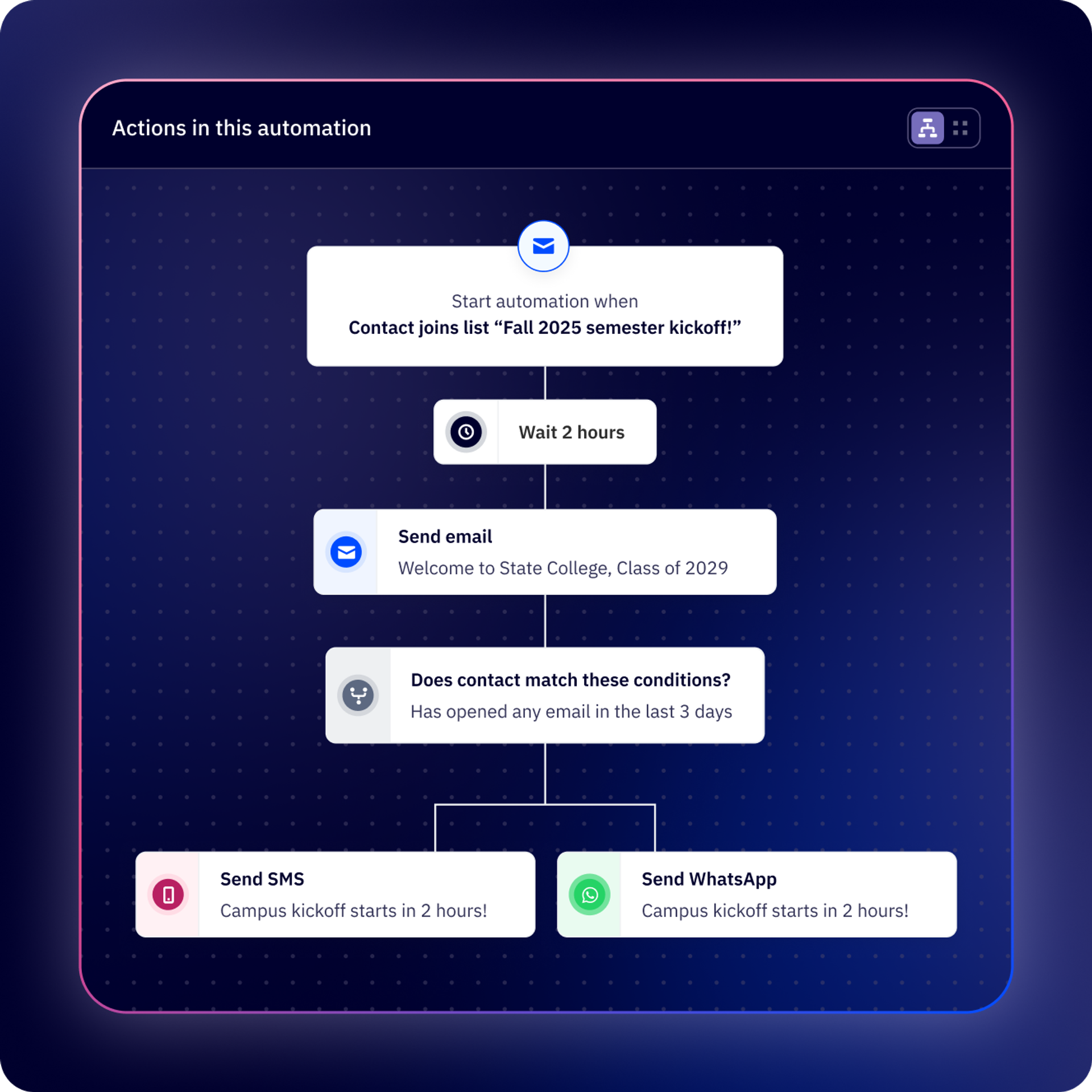Boost your marketing effectiveness by finding and engaging your contacts on the channels that matter most to them. Effortlessly combine email automation with SMS, social media, web, and ad campaigns.