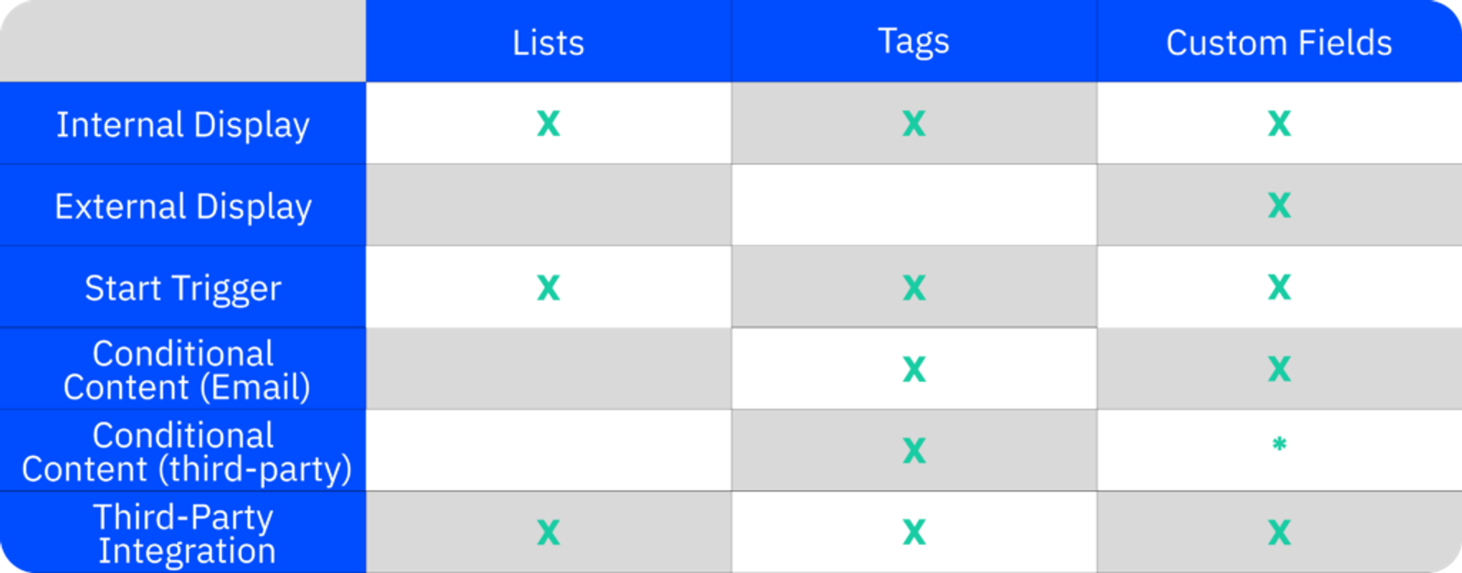 Remember, your business needs may require tags that fall outside the above categories. But, keeping these categories in mind can help you get started with your systems and collect contact data right away. Your tags relate to one of those scenarios more often than not.