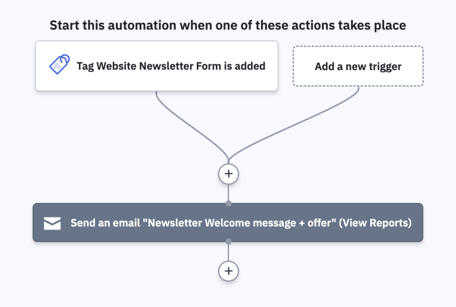 Tags are also frequently utilized as start triggers in your automations. Acting on the addition or removal of a tag allows you to guide your contacts down paths that react to that trigger. You may often find that using these triggers is key to sending campaigns, creating deals, or connecting to an integration based on certain actions.