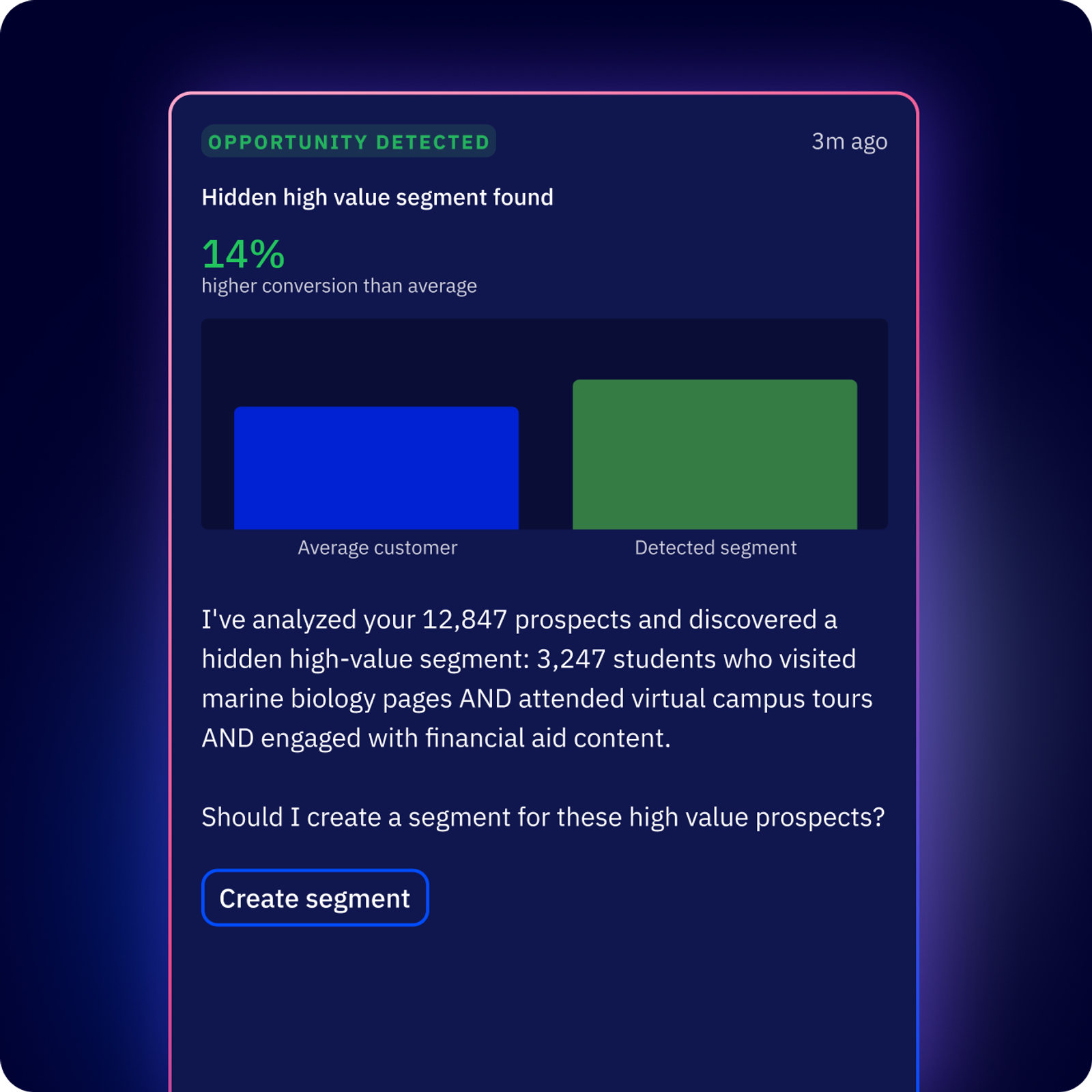 Most marketing automation solutions manage the tasks you set them. Our autonomous platform anticipates what your customers need next and guides your entire strategy to reach your goals.